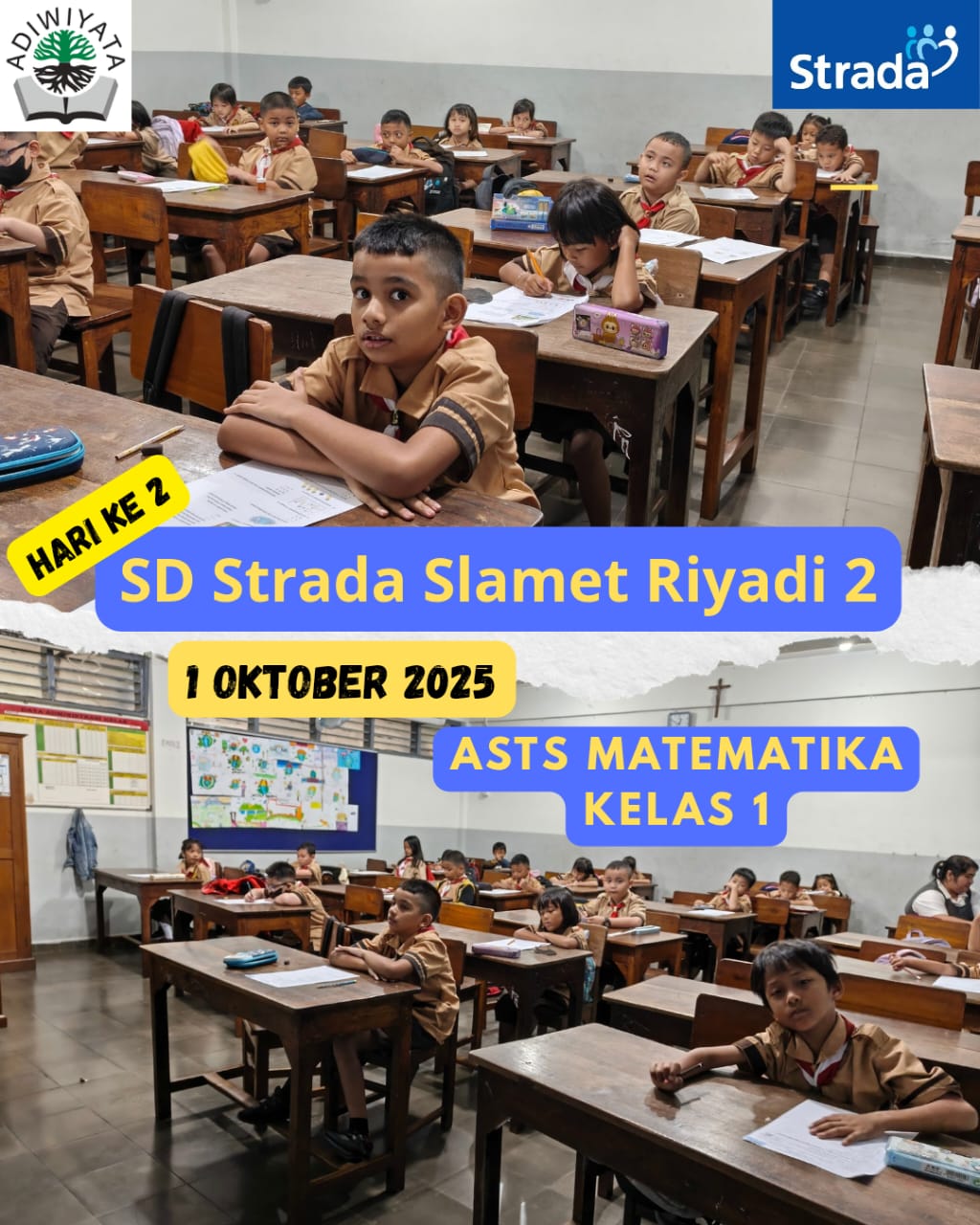 SD Strada Slamet Riyadi 2 telah melaksanakan Asesmen Sumatif Tengah Semester (ASTS) pada tanggal 29 September hingga 3 Oktober 2025. Kegiatan ini bertujuan untuk mengukur pencapaian kompetensi peserta didik selama proses pembelajaran pada paruh semester pertama tahun pelajaran 2025/2026. Melalui asesmen ini, sekolah dapat mengevaluasi hasil belajar siswa sekaligus menjadi dasar dalam meningkatkan kualitas pembelajaran ke depan.